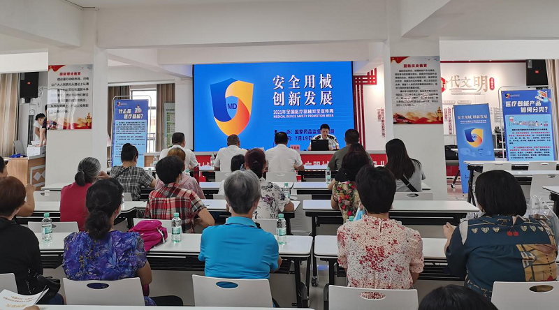 7月22日,玉林市启动以“安全用械  创新发展”为主题的2021年“全国医疗器械安全宣传周”活动,活动现场设立专家义诊台、咨询台,邀请爱尔眼科和蓝天口腔等医疗机构及多家医疗器械经营企业,向公众解答医疗器械安全知识、口腔健康知识和用眼健康知识;采取科普展板展示、发放宣传手册等宣传方式向公众广泛宣传医疗器械政策法规、安全常识以及如何科学选用家用医疗器械等知识,活动形式多种多样、内容丰富多彩,活动现场气氛热烈,吸引了众多市民积极参与。活动现场发放有关医疗器械安全宣传材料2000余份,接受咨询群众达800余人次,有效提升了公众对医疗器械的认知水平,更好地将党史学习教育成果转化为具体行动,为切实保障公众用械安全营造了良好氛围。